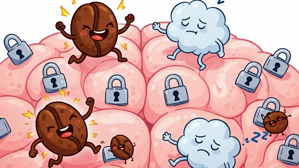 Here’s the key: caffeine, the active ingredient in coffee, is a molecule that closely resembles adenosine. So, these two similar molecules basically race to connect with those receptors. While some receptors get filled by adenosine, caffeine snatches up others. This lessens that heavy feeling in your brain.